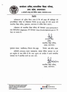 इसकी जानकारी 22 अप्रैल 2026 को बोर्ड सचिव भगवती सिंह ने एक आधिकारिक विज्ञप्ति जारी कर दी है।