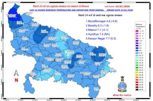 - मौसम विज्ञान केन्द्र (IMD), लखनऊ की ताजा दैनिक रिपोर्ट (21 जनवरी 2026) के मुताबिक, 24 से 26 जनवरी को पश्चिमी उत्तर प्रदेश में और 22 जनवरी व 25-26 जनवरी को पूर्वी उत्तर प्रदेश में मौसम शुष्क रहने की संभावना है। पश्चिमी विक्षोभ के असर से 22-23 और 27-28 जनवरी को पश्चिमी उत्तर प्रदेश में और 23-24 और 27-28 जनवरी को पूर्वी उत्तर प्रदेश में बादल छाने के साथ बारिश की संभावना जताई गई है।