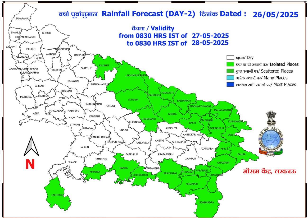 - 30 मई और 31 मई को पश्चिमी यूपी में कहीं-कहीं और पूर्वी यूपी में कुछ स्थानों पर बारिश हो सकती है।