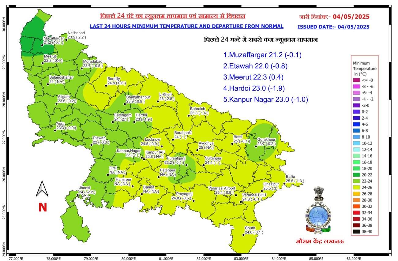 UP Weather Update: पश्चिमी विक्षोभ के असर से प्रदेश में 8 मई तक मौसम का मिजाज यूही बना रहेगा लेकिन 9 मई से फिर मौसम में बदलाव आएगा और तापमान के बढ़ते ही गर्मी का असर देखने को मिलेगा।अगले 5 दिनों के दौरान न्यूनतम तापमान में कोई बड़ा परिवर्तन होने की संभावना न