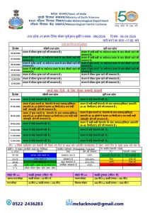 मौसम विज्ञान केन्द्र (IMD), लखनऊ की ताजा दैनिक रिपोर्ट (6 अप्रैल 2026) के मुताबिक, पश्चिमी विक्षोभ के असर से पश्चिमी उत्तर प्रदेश में 7,8 और 9 अप्रैल को गरज चमक के साथ बारिश की संभावना जताई गई है। वहीं 6 से 9 अप्रैल को पूर्वी उत्तर प्रदेश में बादल छाने के साथ बारिश के आसार हैं। इस दौरान मेघगर्जनऔर वज्रपात के साथ 30 से 50 किमी प्रति घंटा की रफ्तार से झोंकेदार हवा चल सकती है। 10 से 12 अप्रैल के बीच पश्चिमी और पूर्वी हिस्से में मौसम साफ व शुष्क रहेगा।