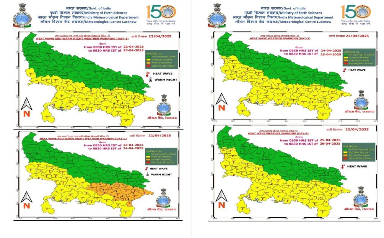 UP Weather Update :उत्तर प्रदेश में गर्मी ने अपने सख्त तेवर दिखाना शुरू कर दिया है। आज बुधवार को भी प्रदेश के 36 जिलों में हीट वेव की चेतावनी जारी की गई है।27 अप्रैल तक प्रदेश के दोनों हिस्सों में मौसम शुष्क रहने का अनुमान है और तापमान में 2 से 3 डिग्री की वृद्धि होने की संभावना है।
