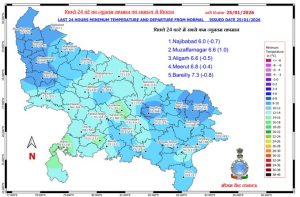 - इस दौरान अधिकतम और न्यूनतम तापमान में उतार-चढ़ाव देखने को मिलेगा। 25-26 जनवरी को पूर्वी व पश्चिमी यूपी घना कोहरा छाए रहने का अनुमान है।