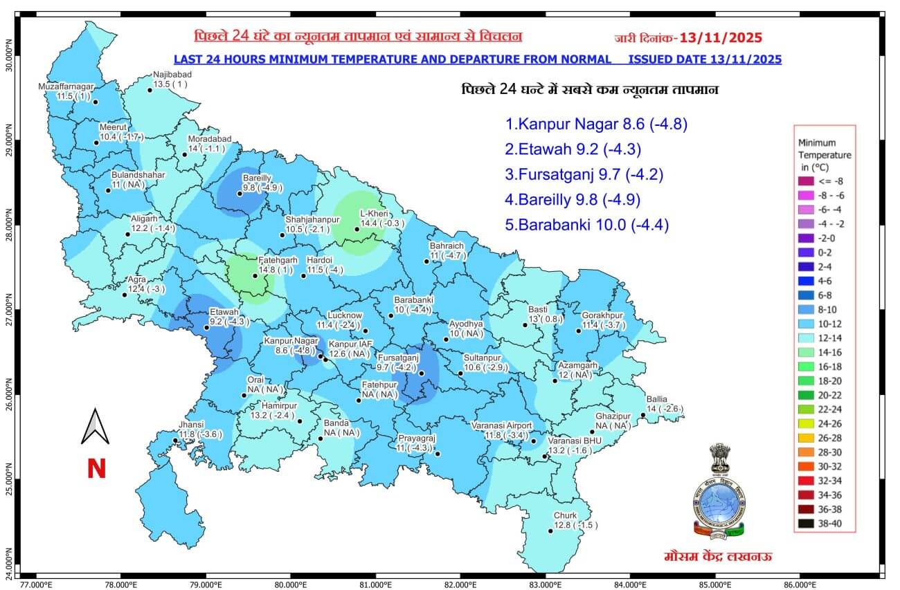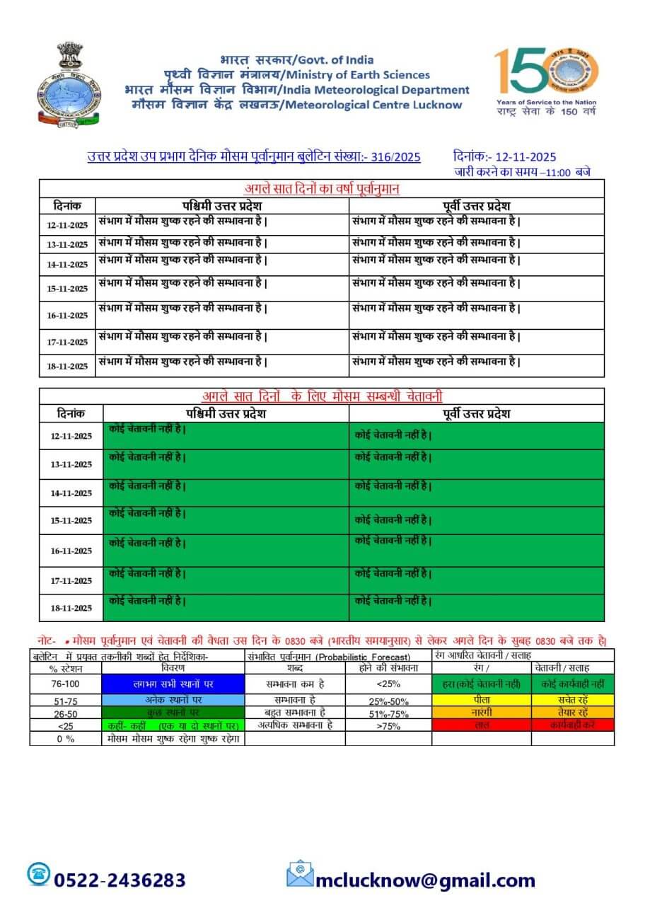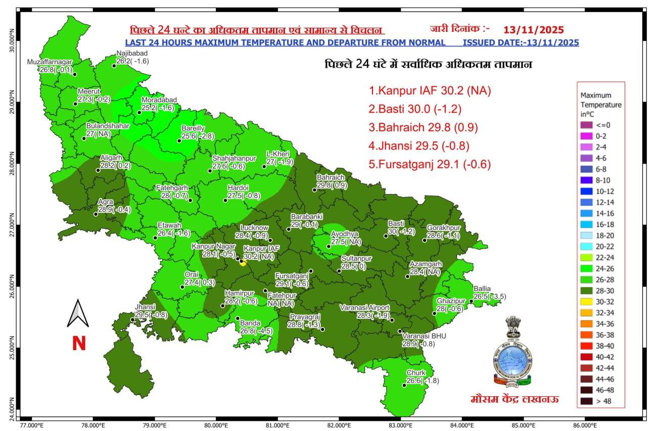 - 13-11-2025: पश्चिमी / पूर्वी यूपी में मौसम शुष्क