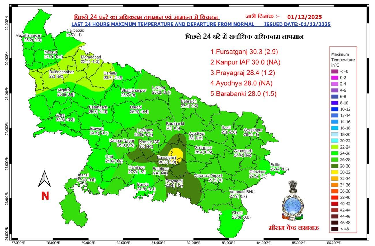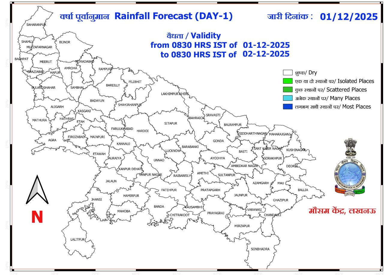 - 1-12-2025: पश्चिमी/पूर्वी हिस्से में मौसम शुष्क/ दोनों हिस्सों में सुबह के समय कहीं-कहीं पर छिछला से मध्यम कोहरा