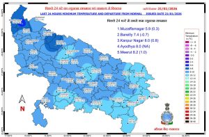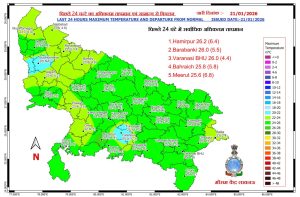 - मौसम विज्ञान केन्द्र (IMD), लखनऊ की ताजा दैनिक रिपोर्ट (21 जनवरी 2026) के मुताबिक, 21 जनवरी और 24-25 जनवरी को पश्चिमी उत्तर प्रदेश में और 21- 22 जनवरी तक व 25-26 जनवरी को पूर्वी उत्तर प्रदेश में मौसम शुष्क रहने की संभावना है। पश्चिमी विक्षोभ के असर से 22-23 और 26-27 जनवरी को पश्चिमी उत्तर प्रदेश में और 23- 24 और 27 जनवरी को पूर्वी उत्तर प्रदेश में बादल छाने के साथ बारिश की संभावना जताई गई है।