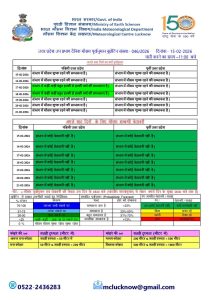मौसम विज्ञान केन्द्र (IMD), लखनऊ की ताजा दैनिक रिपोर्ट (13 फरवरी 2026) के मुताबिक, 15 और 16 फरवरी को पश्चिमी उत्तर प्रदेश में और 15 से 21 फरवरी तक पूर्वी उत्तर प्रदेश में मौसम शुष्क रहने की संभावना है। 16 फरवरी को एक नया पश्चिमी विक्षोभ सक्रिय होने जा रहा है जिसके असर से 17 व 18 फरवरी को पश्चिमी उत्तर प्रदेश में बादल छाने के साथ कहीं-कहीं हल्की वर्षा की संभावना जताई गई है।