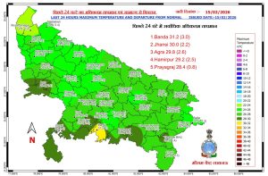 अगले 24 घंटों में न्यूनतम तापमान में कोई विशेष बदलाव नहीं होगा लेकिन इसके बाद के तीन दिनों में 2-3°C की धीरे-धीरे बढ़ोतरी होने की संभावना जताई गई है। शनिवार (14 फरवरी 2026) को झांसी में सबसे ज्यादा अधिकतम तापमान 30 °C दर्ज किया गया।