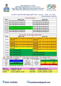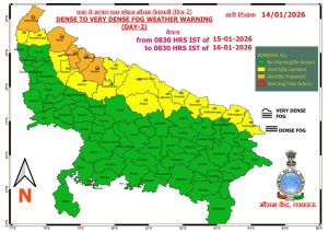 मौसम विज्ञान केन्द्र (IMD), लखनऊ की ताजा दैनिक रिपोर्ट (15 जनवरी 2026) के मुताबिक, 15 से 21 जनवरी तक पूर्वी उत्तर प्रदेश में मौसम शुष्क रहने की संभावना है। 15 से 17 जनवरी तक और 20 व 21 जनवरी को पश्चिमी यूपी में मौसम शुष्क रहने का अनुमान है। हालांकि 18 और 19 जनवरी के बीच पश्चिमी यूपी में बादल छाने के साथ हल्की बारिश की संभावना जताई गई है। 19 जनवरी तक पश्चिमी और पूर्वी उत्तर प्रदेश में कुछ स्थानों पर मध्यम से घना कोहरा छाया रह सकता है। 20 जनवरी से कोहरे का प्रभाव कम होने लगेगा।
