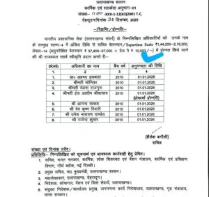 कार्मिक विभाग की ओर से जारी आदेश के अनुसार, वर्ष 2010 बैच के आठ आईएएस (भारतीय प्रशासनिक सेवा) अपर सचिवों को सचिव पद पर पदोन्नत किया गया है। इनमें डॉ. अहमद इकबाल, सोनिका, रंजना राजगुरु, ईवा आशीष श्रीवास्तव, आनंद स्वरूप, देवकृष्ण तिवारी, उमेश नारायण पांडेय और राजेंद्र कुमार के नाम शामिल हैं।