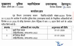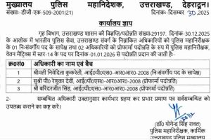 नए साल के आगमन से पहले उत्तराखंड सरकार ने कई आईएएस-आईपीएस को बड़ा तोहफा दिया है। राज्य की पुष्कर सिंह धामी सरकार ने प्रशासनिक और कानून व्यवस्था को मजबूत करने के लिए आईएएस-आईपीएस (भारतीय पुलिस सेवा) अफसरों को पदोन्नति प्रदान की है। कार्मिक विभाग और गृह विभाग ने 30 दिसंबर 2025 को अलग-अलग पदोन्नति आदेश जारी किए हैं, जो 1 जनवरी 2026 से प्रभावी होंगे।