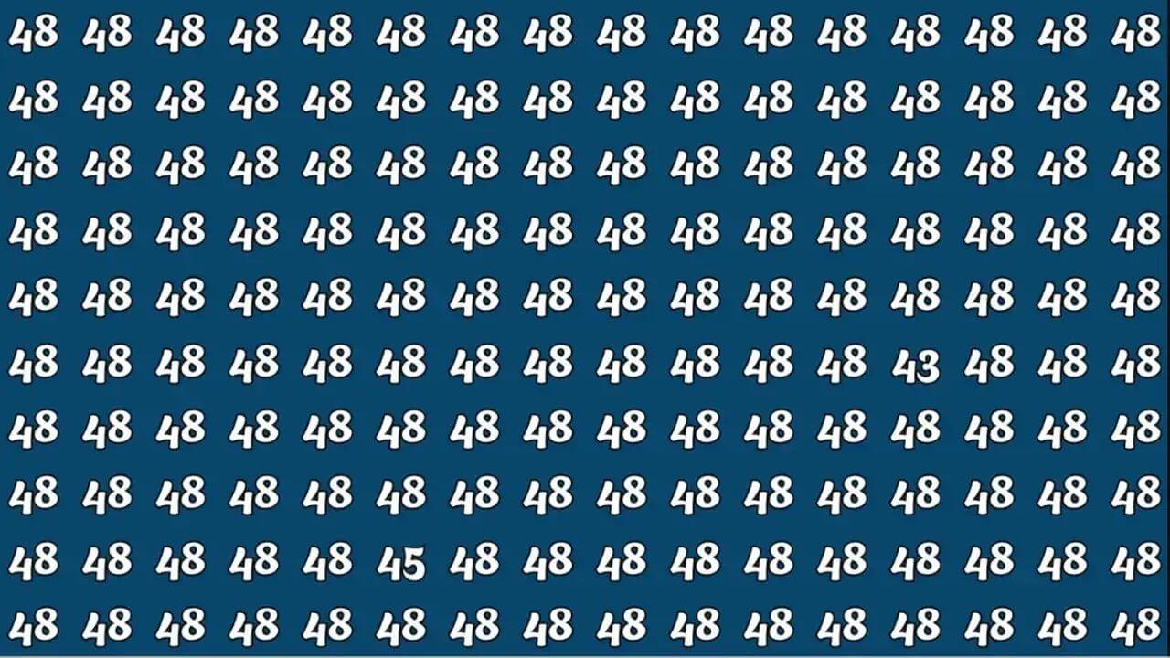 इस ब्रेन टेस्ट में, एक ग्रिड में केवल 48 नंबरों की भरमार है, लेकिन कहीं न कहीं 43 और 45 भी छिपे हुए हैं। आपका काम है इन्हें 8 सेकंड के भीतर ढूंढना। यह चुनौती आपके पैटर्न पहचानने की क्षमता और ध्यान केंद्रित करने की शक्ति का परीक्षण करती है।