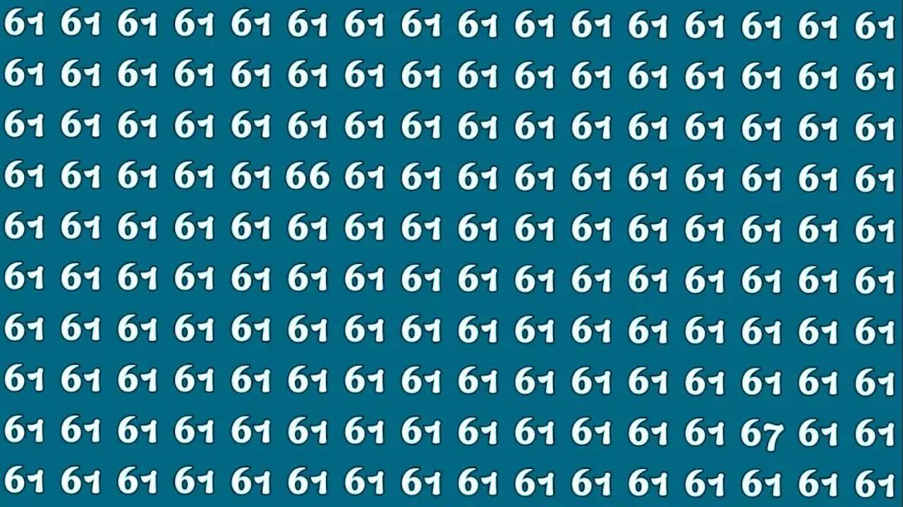 सोशल माध्यम पर इस समय एक ऐसी तस्वीर चर्चा में है जो आपकी आंखों और दिमाग की असली परीक्षा (Brain Test) ले रही है। इस तस्वीर में हर तरफ एक ही अंक 61 दिख रहा है, लेकिन इसके बीच दो खास अंक छुपे हैं, 66 और 67। दावा किया जा रहा है कि 100 में से 99 लोग इन्हें खोज नहीं पा रहे हैं।