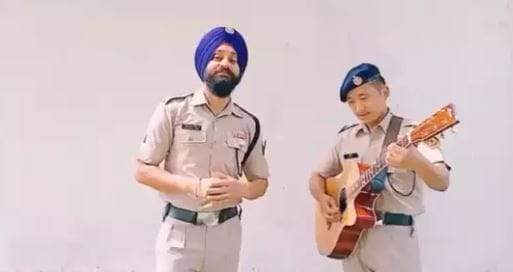 Constable Vikram Jeet Singh of #itbp sings. Constable A Neli strums the Guitar.
