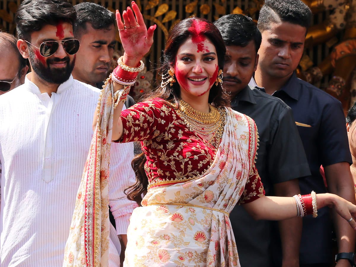 महाषष्ठी के दिन नुसरत जहां दुर्गा पंडाल में पहुंची और पारंपरिक बंगाली वाद्य यंत्र बजाते देखी गई और उन्होंने ढाक की थाप से पूरे पांडाल को गुंजायमान कर दिया। हमेशा किसी ना किसी बात को लेकर सुर्खियां बटोरने वाली अभिनेत्री इस समय बशीरहाट सांसद भी हैं। नुसरत जहां अक्सर अपनी पर्सनल लाइफ के चलते लाइमलाइट में बनी रहती हैं। हाल ही में उन्होंने अपनी फिल्म मास्टरमोशाई आपने किछु देखिनी की शूटिंग कंप्लीट की है।