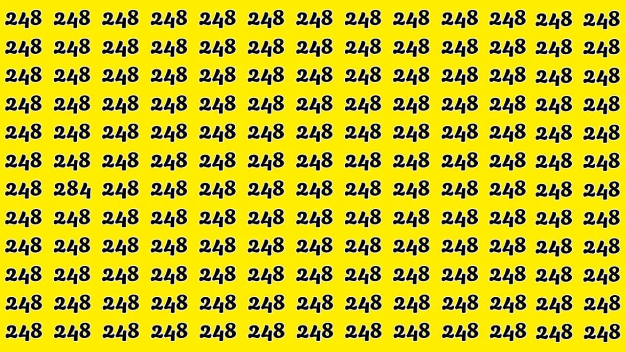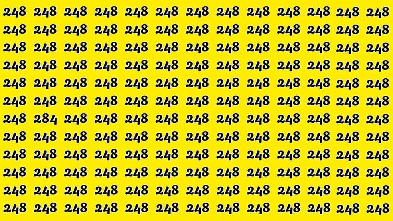 इस चैलेंज में, 248 नंबरों की भीड़ में एक 284 नंबर छिपा है। पहली नजर में सभी नंबर एक जैसे लगते हैं, लेकिन ध्यान से देखने पर आपको फर्क नजर आएगा। यह चैलेंज आपकी पैटर्न पहचानने की क्षमता और ध्यान केंद्रित करने की शक्ति की परीक्षा है।