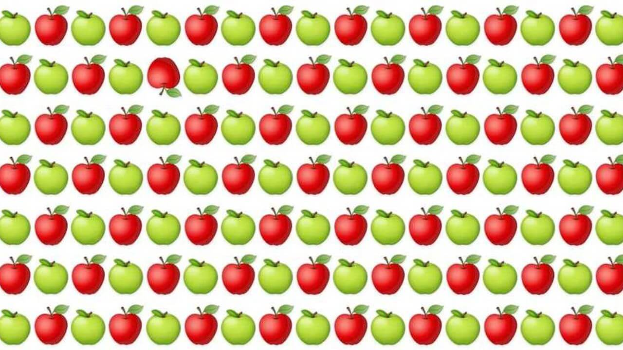 क्या आप चार सेकेंड में उस अलग सेब को ढूंढ सकते हैं. चलिए आपका समय शुरू होता है. क्या आपको सबसे अलग सेब मिल चुका है. अगर हाँ तो बहुत बहुत बधाई हो आपकी आंखें और दिमाग़ बहुत तेज़ है.