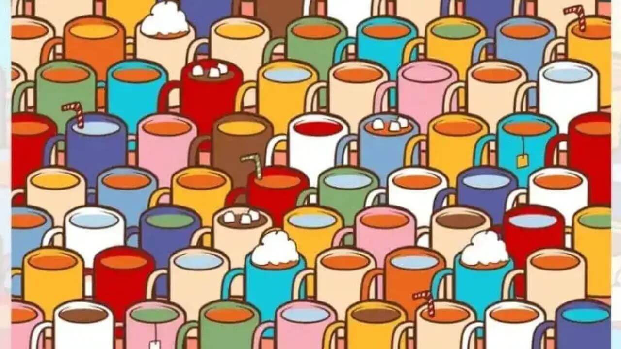 आपका काम है , तस्वीर को ध्यान से देखिए और बताइए कि कौन-सा कप उल्टा रखा गया है। ये सुनने में भले आसान लगे, लेकिन कई लोग इसे हल करने में चकरा जाते हैं।
