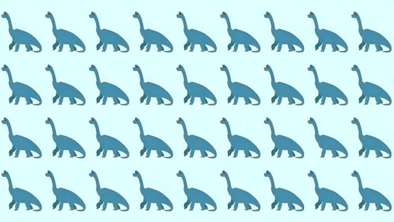 इस वायरल तस्वीर में कई डायनासोर नजर आ रहे हैं जो लगभग एक जैसे दिखते हैं। लेकिन ध्यान से देखने पर इनमें से एक डायनासोर थोड़ा अलग है चाहे उसकी आंख हो, पूंछ हो या पैर की शेप। यही यूनिक डायनासोर आपको 4 सेकेंड में ढूंढना है।