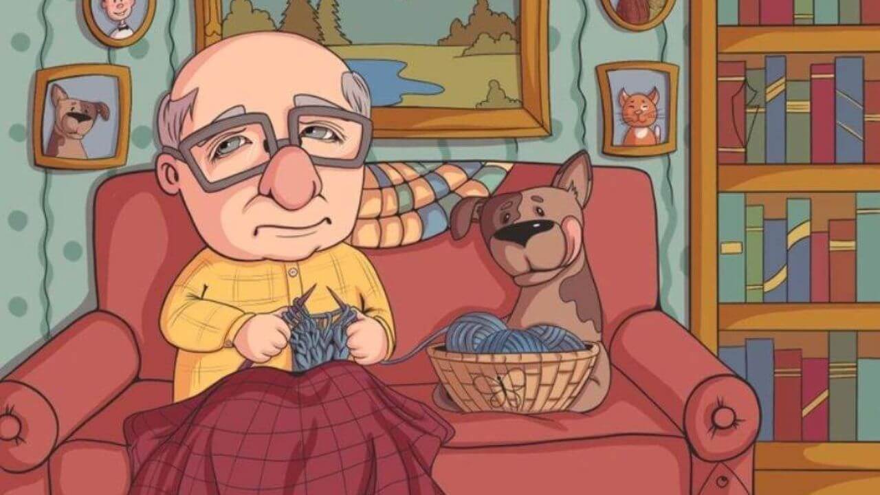 आपके सामने एक तस्वीर मौजूद है जिसमें लिविंग रूम का एरिया नज़र आ रहा है, इस रूम के अंदर कई तरह की तस्वीरें लगी हुई है, और सोफ़े पे एक बुजुर्ग व्यक्ति बैठा हुआ है, जो बुनाई करता हुआ नज़र आ रहा है. उसके बग़ल में ही उसका एक पालतू कुत्ता भी बैठा हुआ है. लेकिन इस तस्वीर में कहीं न कहीं तितली भी छिपी हुई है, जो शायद आप को आसानी से नहीं मिलेगी.