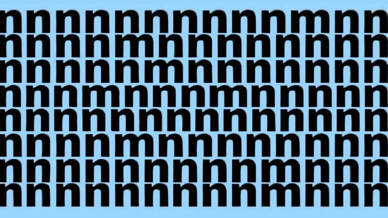 इस तस्वीर में बहुत सारे “n” अक्षर लिखे हैं। लेकिन कुछ जगह “m” भी छुपे हुए हैं। चैलेंज ये है कि इन्हें जल्दी से पहचाना जाए। देखने में ये अक्षर एक जैसे लगते हैं, इसलिए लोग अक्सर गड़बड़ कर बैठते हैं।