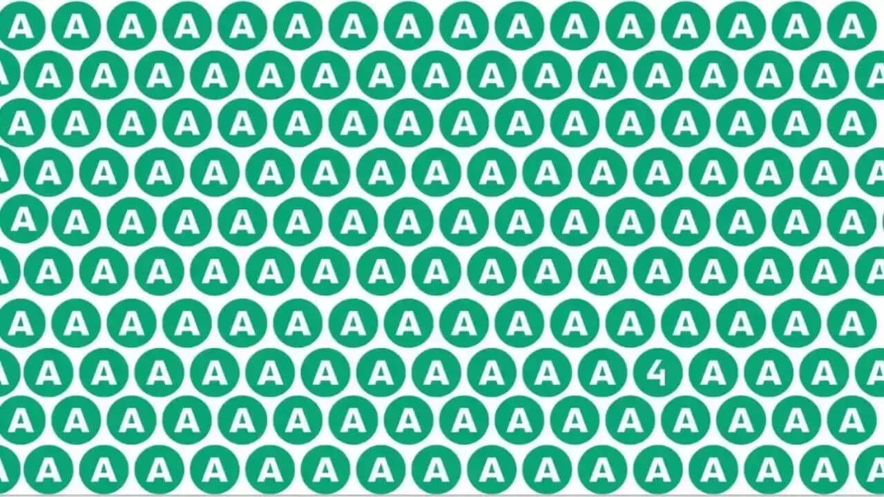 इस तरह की ऑप्टिकल इल्यूजन तस्वीरें न केवल मनोरंजन का साधन हैं, बल्कि ये हमारे दिमाग और आंखों की क्षमता को भी परखती हैं। इस तस्वीर में ‘A’ अक्षरों की भीड़ में छिपा ‘4’ नंबर ढूंढना आसान नहीं है। यह चुनौती न केवल आपकी नजरों की तेज़ी की परीक्षा है, बल्कि यह भी देखती है कि आप कितनी जल्दी और सटीकता से जानकारी को प्रोसेस कर सकते हैं। ऐसी पहेलियां हमारे मस्तिष्क को सक्रिय रखती हैं और मानसिक व्यायाम का एक अच्छा माध्यम होती हैं।