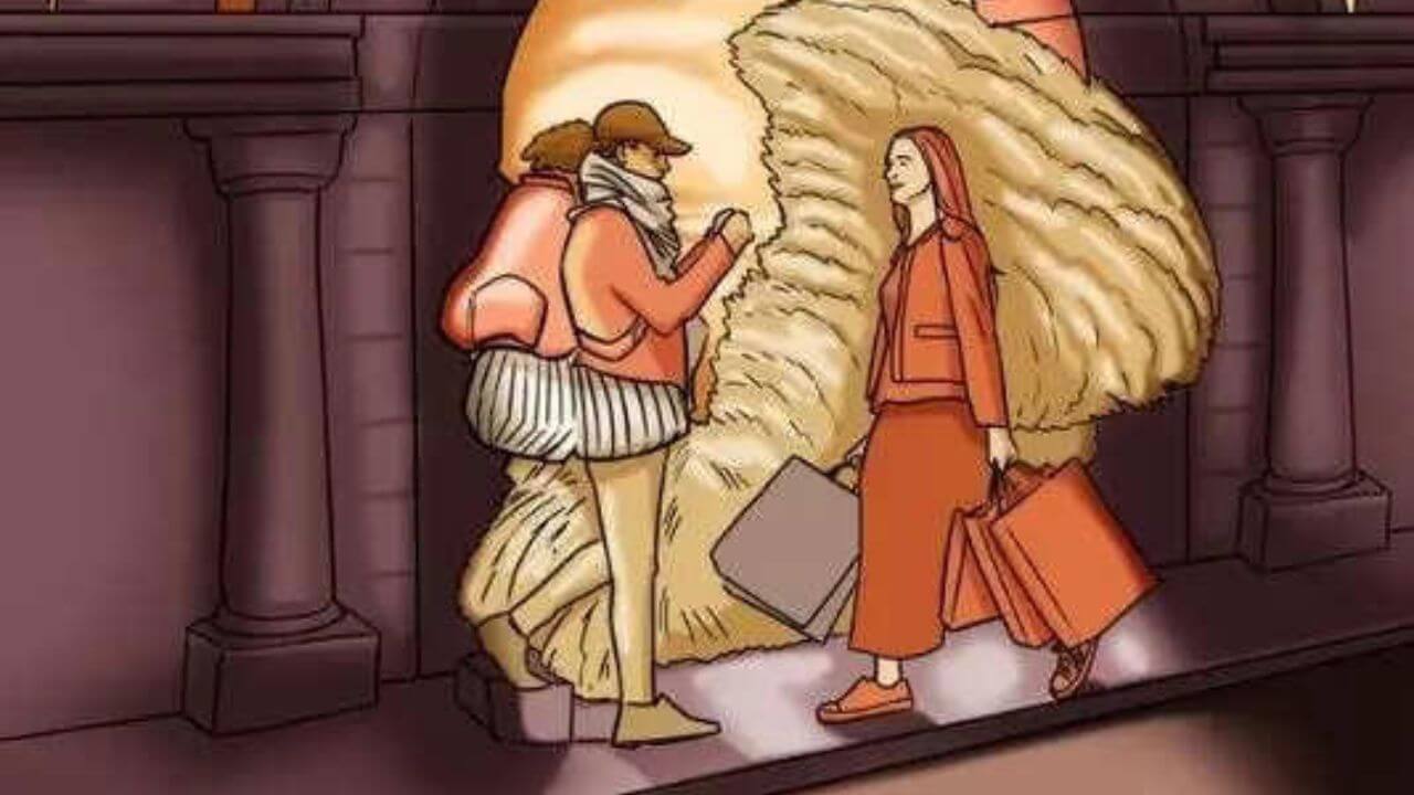 पहली बार देखने में एक आदमी और महिला दिखाई दे रही है जिन्होंने अपने हाथों में शॉपिंग बैग पड़ा हुआ है जो की सड़क पर चलते हुए दिखाई दे रहे हैं। इस तस्वीर में एक प्यारा सा कुत्ता सोते हुए भी दिख रहा है। ऊपर पक्षी आकाश में उड़ रहे हैं। लेकिन इस तस्वीर में अभी भी कुछ एक चीज ऐसी है जो शायद आपको दिख नहीं रही है लेकिन वह तस्वीर में मौजूद है।