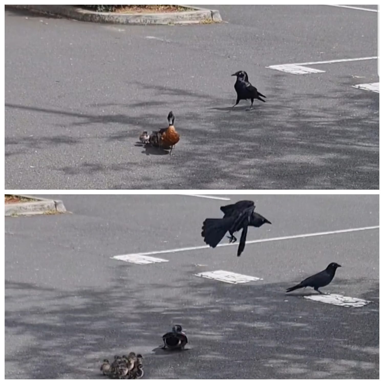 इस वीडियो में एक मां बत्तख (duck) अपने बच्चों के साथ दिख रही है। उनके पास दो कौवे (crow) है..जिनमें से एक कौवा बार बार आकर बच्चों को परेशान कर रहा है। वो बार बार उड़कर आता और बच्चों को डरा देता। ऐसे में मां बत्तख ने कौवे को खूब सबक सिखाया। वो उसके पीछे दौड़ी और उसे उड़ाकर ही मानी। हालांकि कौवा भी कम जिद्दी नहीं था, वो बार बार फिर लौटकर बत्तख के बच्चों के पास आ जाता। लेकिन हर बार उनकी मां ने दौड़ाकर कौवे को उड़ा दिया। ये वीडियो हमें सिखाता है कि कभी भी किसी को बेवजह परेशान नहीं करना चाहिए। किसी को भी छेड़ना और उसके पीछे पड़ने से खुद का भी नुकसान हो सकता है। वीडियो को सोशल मीडिया पर काफी पसंद किया जा रहा है।