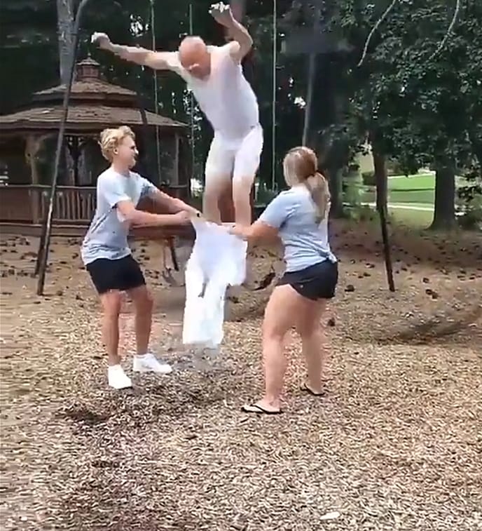 कहते हैं जिंदगी जिंदादिली का नाम है..ये बात समय समय पर लोग साबित भी करते रहे हैं। आज हम आपके लिए ऐसा ही एक वीडियो लेकर आए हैं। इसमें एक बुजुर्ग शख्स अपने बच्चों के साथ मिलकर बहुत ही मजेदार खेल खेल रहे हैं। इसमें कामयाब होने के बाद वो बच्चों की तरह नाच कूदकर अपनी खुशी जाहिर करते हैं। वीडियो में हम देखते हैं कि बुजुर्ग व्यक्ति झूला झूल रहे हैं और दो युवा उनके सामने एक पैंट पकड़े हुए खड़े हैं। बुजर्ग शख्स ने शार्टस पहने हुए हैं, वो झूला झूलते हुए सामने आते हैं और फिर एकाएक उसपर से हवा में उछाल लगा देते हैं।