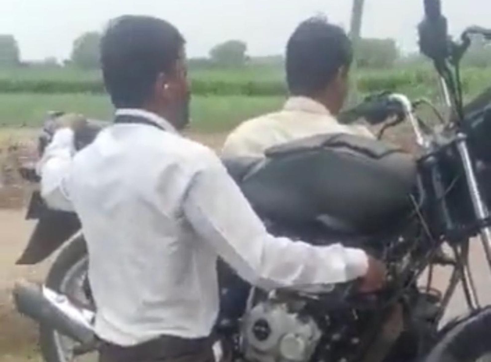 It is being claimed that after a man from #Vaijapur in #Aurangabad defaulted on his bike #loan installments, #Finance company's #recovery agents seize his bike, n unable to start, carried it on their 2wheeler#Maharashtra