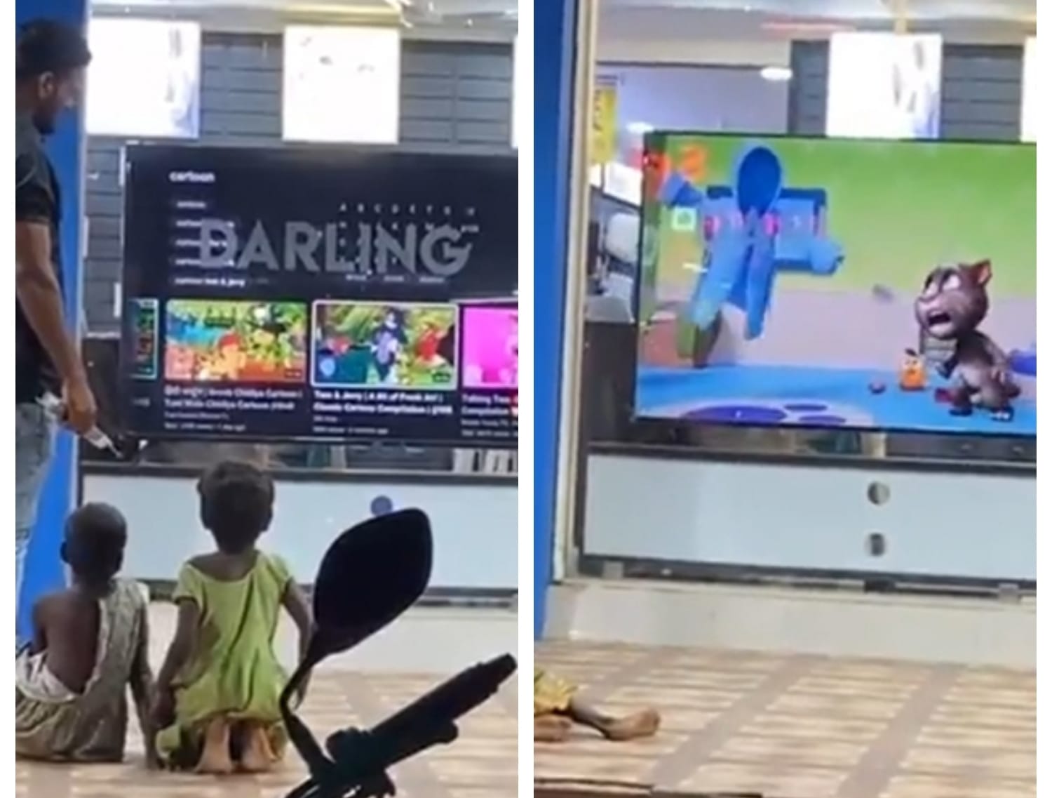 एक ऐसा ही प्यारा वीडियो सामने आया है, जिसमें कुछ ऐसे ही बच्चे हैं और एक युवक है। ये एक टीवी शोरूम के बाहर का वीडियो है। शीशे की दीवार के बाहर बड़े टीवी डिस्प्ले पर कुछ नजर आ रहा है और दो बेघर बच्चे वहां बैठकर टीवी देख रहे हैं। तभी एक सेल्समैन शोरूम से बाहर आता है। अक्सर तो होता ये है कि इन बच्चों को डपटकर भगा दिया जाता है। लेकिन यहां सीन बदला हुआ है। सेल्समैन के हाथ में रिमोट है और वो बाहर आकर टीवी के चैनल बदलने लगता है। वो बच्चों से उनकी पसंद पूछता है कि वे क्या देखना चाहते हैं। बच्चे एक कार्टून शो पर ठहर जाते हैं और सेल्समैन कार्टून लगा देता है।